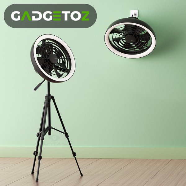 JISULIFE FA17 Rechargeable Fan with LED Ceiling Fan with Tripod Stand