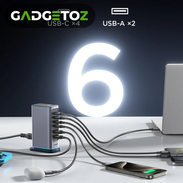 - Charge 6 Devices Simultaneously: With four USB-C ports and two USB-A ports offering a total 65W of power, you can now charge your phone, tablet, laptop, and more—all at the same time