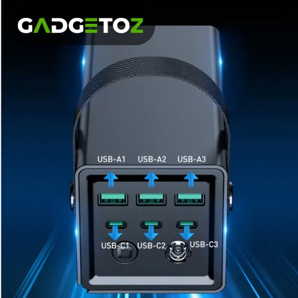 - USB-C1+USB-C2+USB-C3+USB-A1+USB-A2+USB-A3 Total Output : 5V/9A