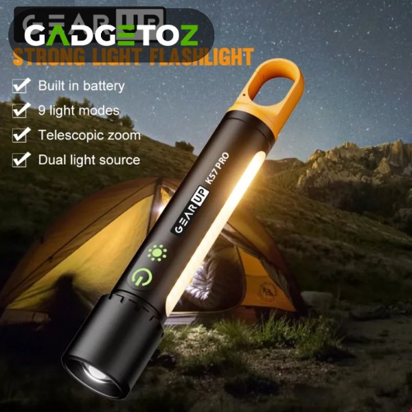 GearUP K57 PRO Rechargeable High Power Flashlight + Large COB Light with 3500mAh Lithium Battery